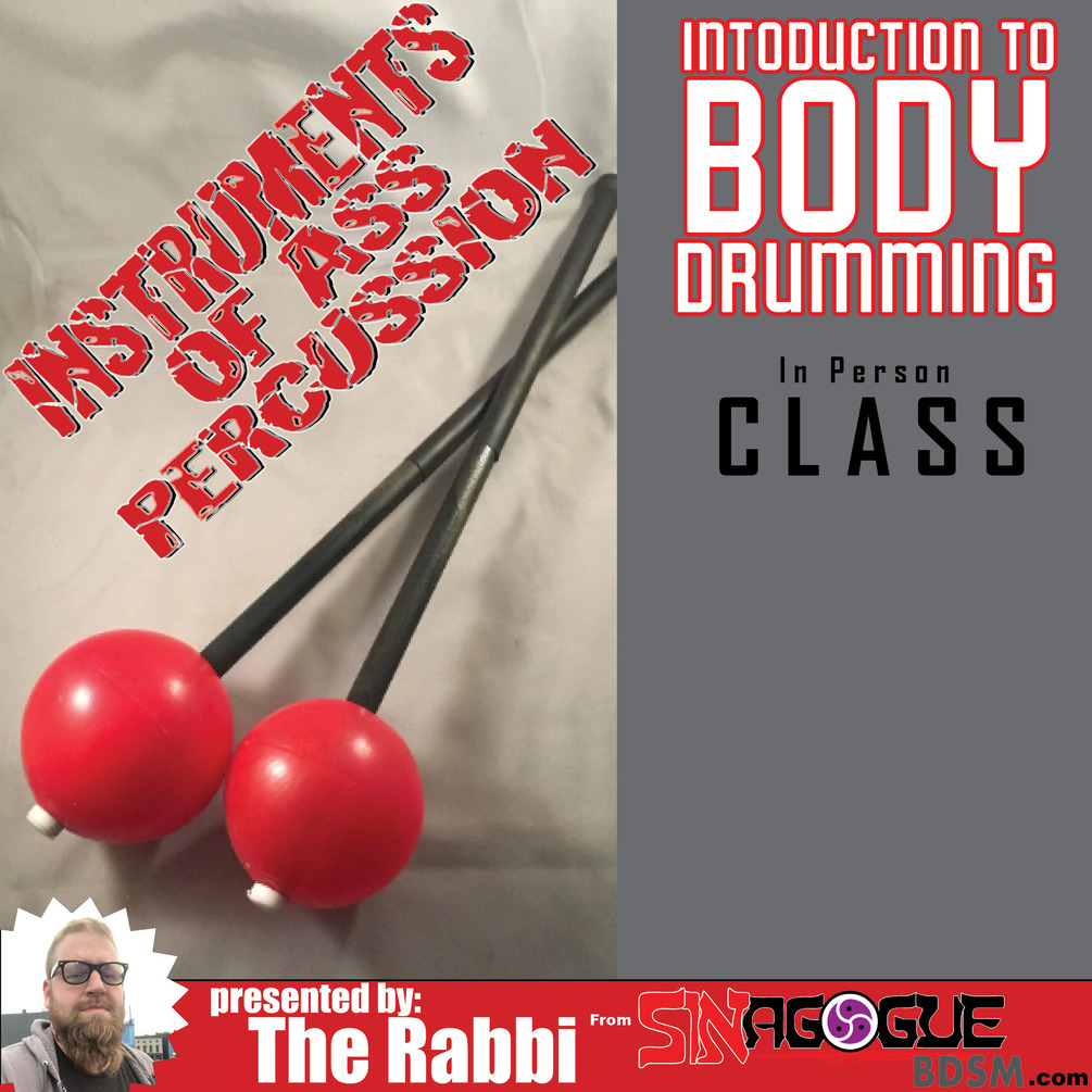 Body drumming is a form of massage-like rhythmic impact play where the drummer hits the receiver with drumsticks of different textures, sizes, and shapes in sync with the music, in conjunction with sensory deprivation via headphones and blindfold to create the illusion to the receiver that their own body is the musical instrument creating the sounds. Body drumming can be sensual, sadistic, or even orgasmic. The class will cover technique, equipment needed, music selection, and more.